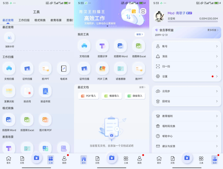 手机拍纸质文档,一键生成扫描件,可生成高清JPG图片或PDF文件,还可以拍照提取图片里的文字变,功能还是很强大的,这个版本是由网友分享的,解锁了VIP会员功能,还去除了广告。