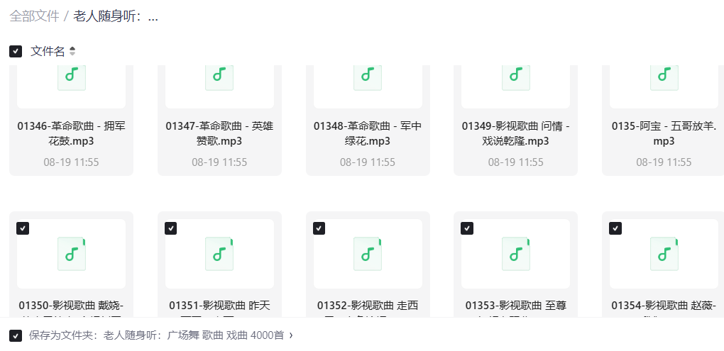 总共4000+首! 全是老人爱听的,音质清晰,直接导入MP3/随身听就能用,操作超简单~