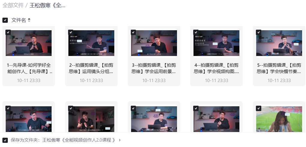 在这个短视频时代要学会如何成为一名优秀的视频创作者,今天给大家分享一个王松傲寒付费课《全能视频创作人课程》,一共有64集,这是一个成功优秀博主的创作教程课程,可以给需要的人一点学习思路。