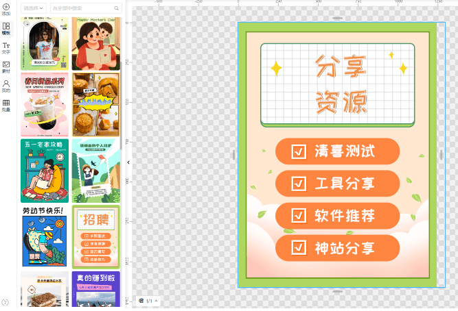 这是一款在线工具,无需安装任何软件,即可轻松创建各种图片效果,支持调整尺寸、加水印、添加滤镜等多种编辑功能,内置了很多抖音、小红书、微信公众号的风格模板,我们可以自定义内容,从而实现快速出图。