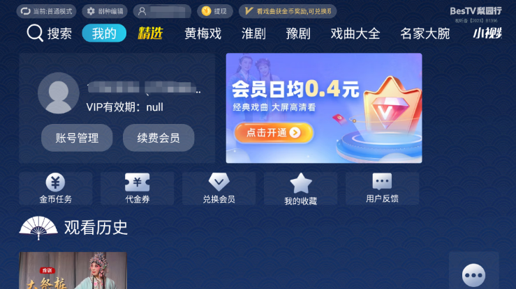 梨园行TV版 解锁VIP会员去广告 免费看戏曲的电视软件