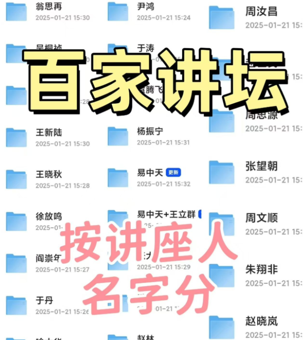 这是在某鱼上花了29元买的《百家讲坛》珍藏版视频,内容比较全,因为是付费内容,卖家整理的也比较详细,全是按照名字分类好的。