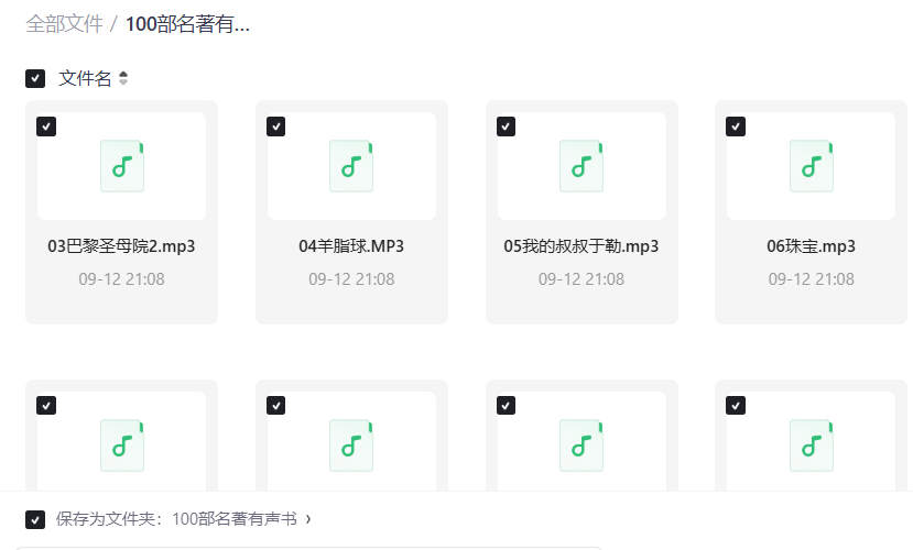 100部世界名著有声读物,没时间看书的小伙伴,试试听书吧,精选了100部名著,是时候恶补一下了。