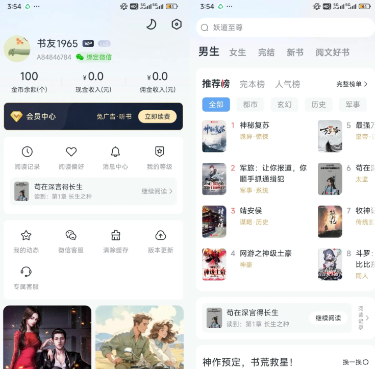 七猫小说+淘小说基于官方最新版,默认点亮年费图标、解锁会员功能、去除所有广告,安装之后尽量不要更新,避免解锁功能失效。